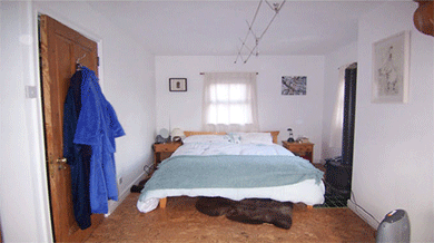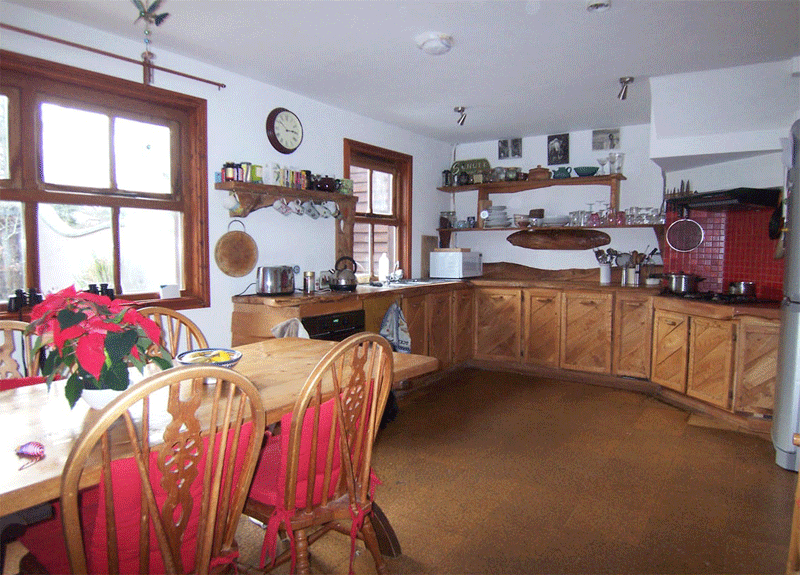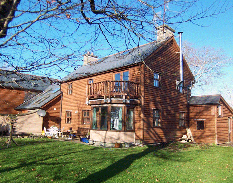 Wood frame construction with 3 bedrooms + extra sky lighted attic rooms + studio apt annex and gardens to front and rear. Complete with grass roofed shed. The house faces south and is spacious, warm and easy to heat. 2 bathrooms - one on each floor, oil fired central heating, 2 wood stoves, patio at rear and deck on side.